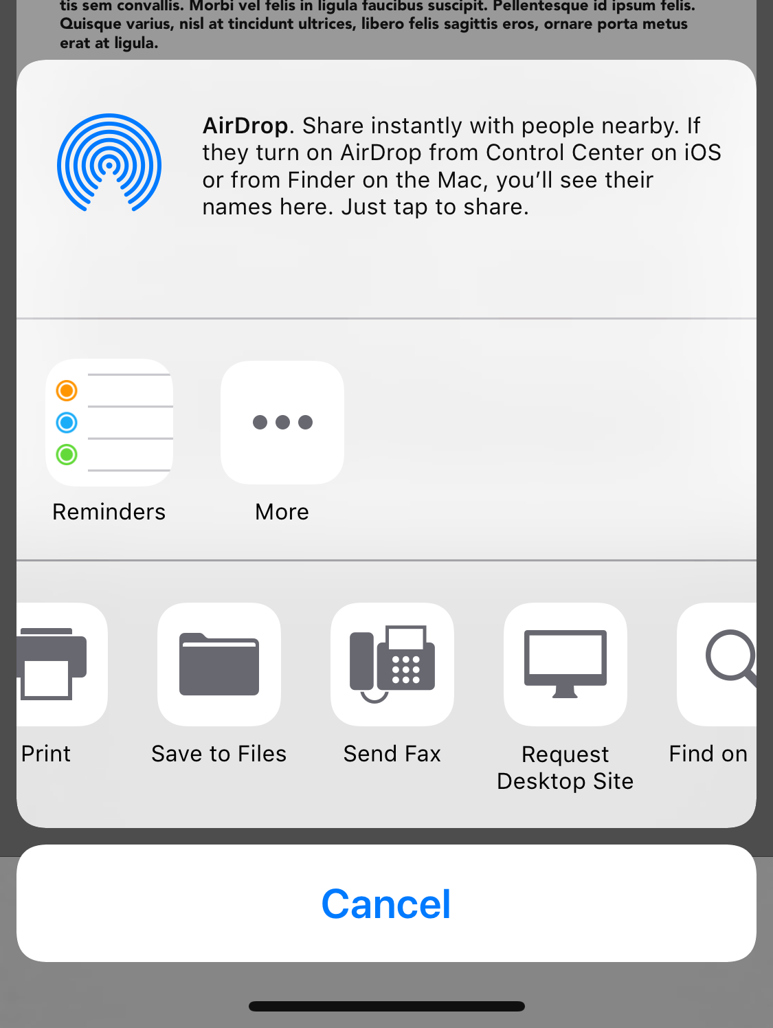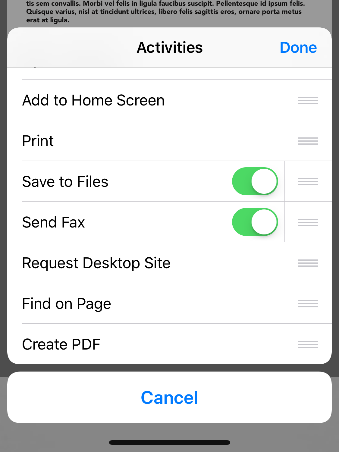 After enabling the Send Fax activity you can now select Send Fax from the bottom row on the share view.